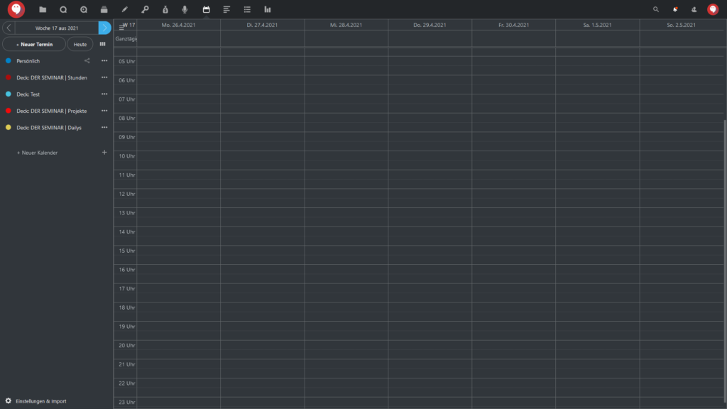 Ihr Bildschirm zeigt danach eine Übersicht mit der jeweils aktuellen Kalenderwoche: