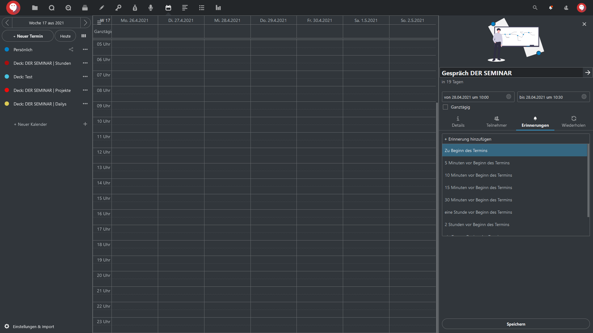 - Farbcodierung für den Termin eingestellt werden können.